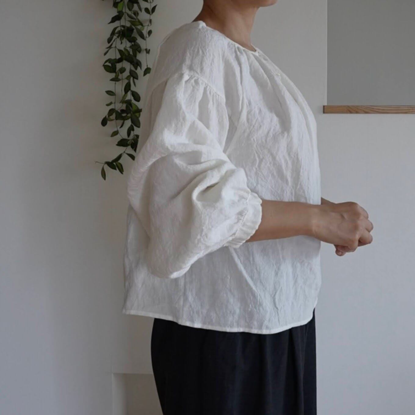 袖口にはゴムを入れているため、腕まくりも可能。たくし上げたときの、ふんわりとした袖のシルエットも魅力です。