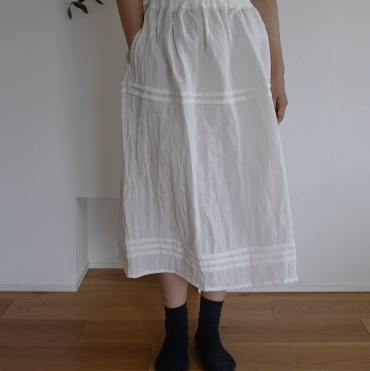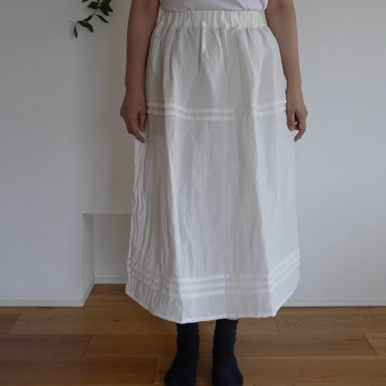 ポイントにピンタックをあしらった、シンプルなスカート。