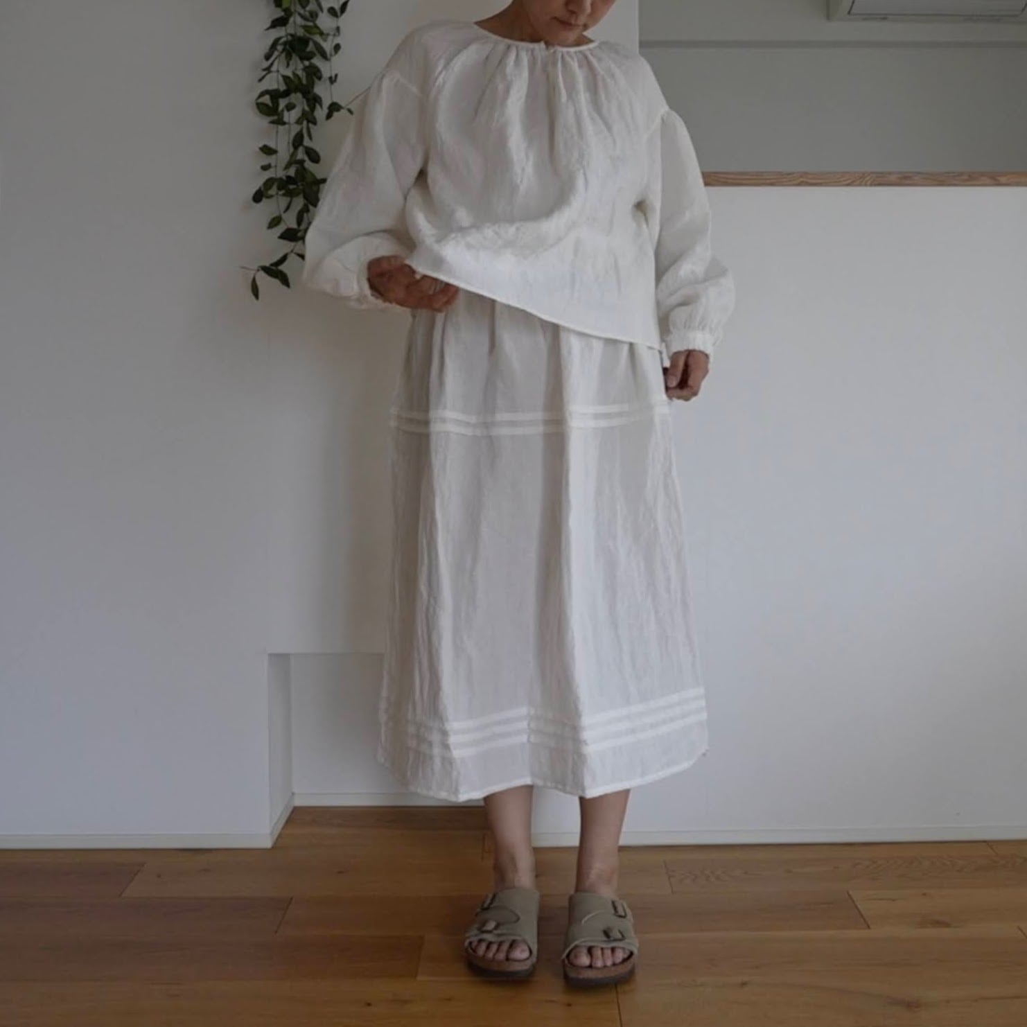 生地はリネン100%。軽やかな着心地で、新しいうちは程よいハリ感を楽しめます。